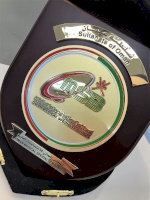 وقام سعادة الدكتور هلال السبتي بتقديم درع المجلس العماني الى الدكتور أمين ثلجي مثمناً زيارته و متطلعاً للتعاون القريب بين المجلسين.